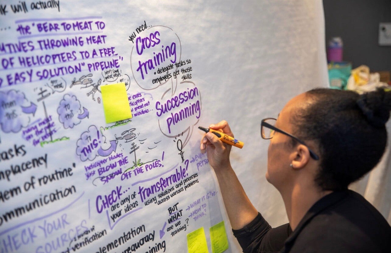 Whether it’s a keynote, workshop, training session, or brainstorm, I capture your words in real time with bold visuals that empower you to see, remember, and connect.